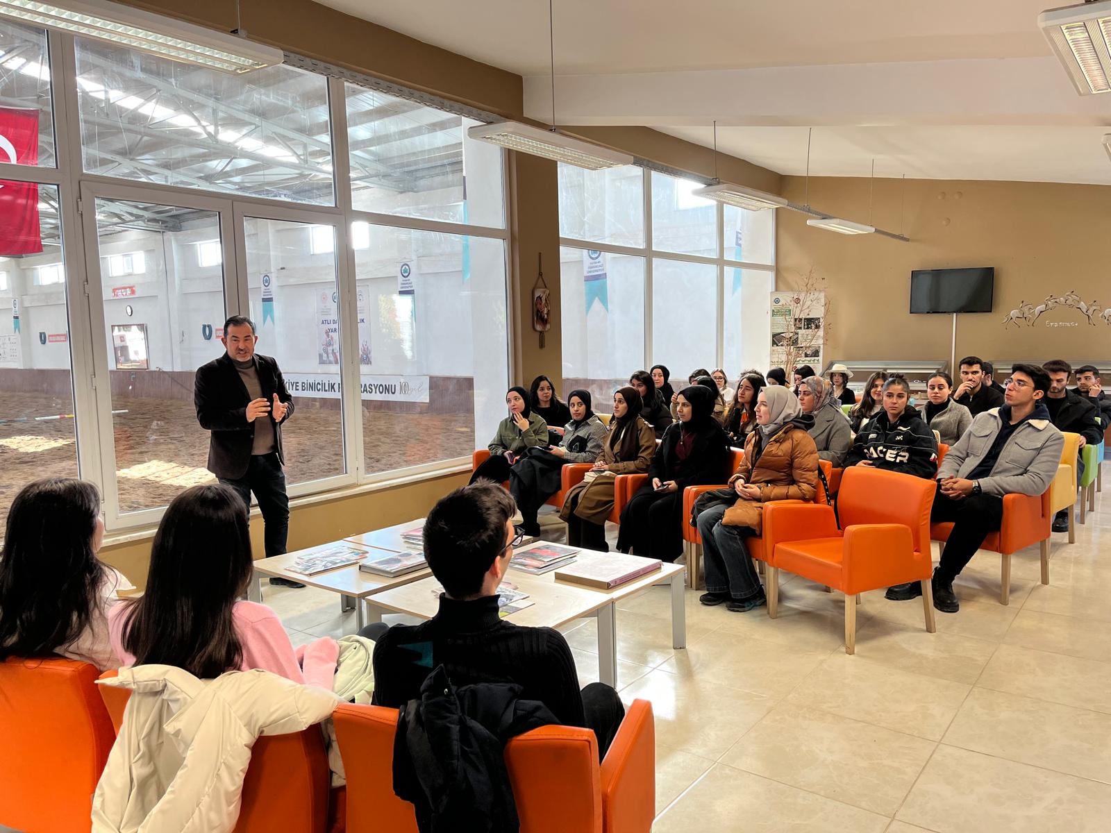 Program, öğrencilerin yüksekokulumuz yemekhanesinde bir araya gelmesiyle başladı. Ardından misafir öğrenciler için biniş etkinliği düzenlendi ve binicilik eğitim ortamımız tanıtıldı. Ziyaret, okçuluğun tanıtıldığı açık manej alanında devam etti.